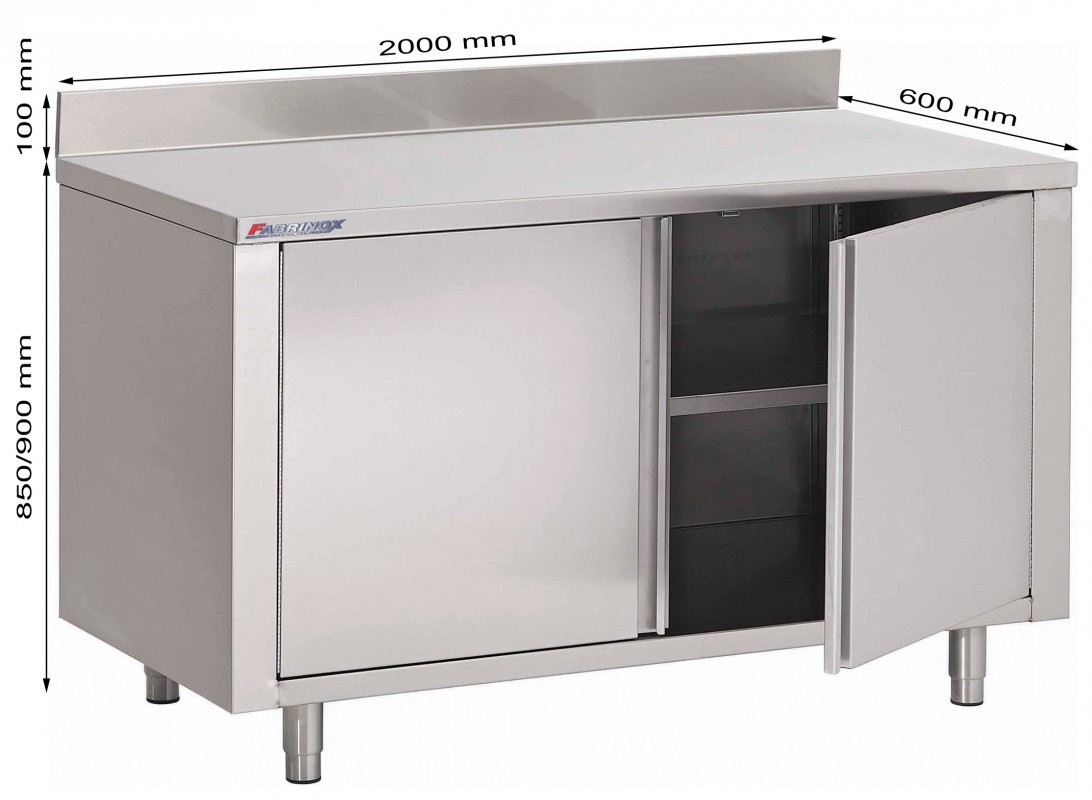 Armoire basse soudée adossée avec portes battantes L2000xP600xH850/900 mm INOX AISI 430
