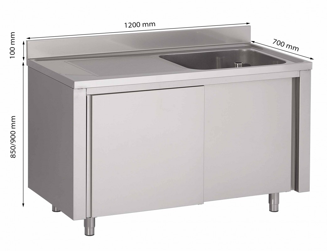 Plonge sur Armoire égouttoir à gauche avec 1 bac L1200xP700xH850/900 mm