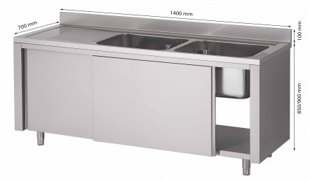 Spoeltafel op kast verlek links 2 bakken L1400xP700xH850/900 mm
